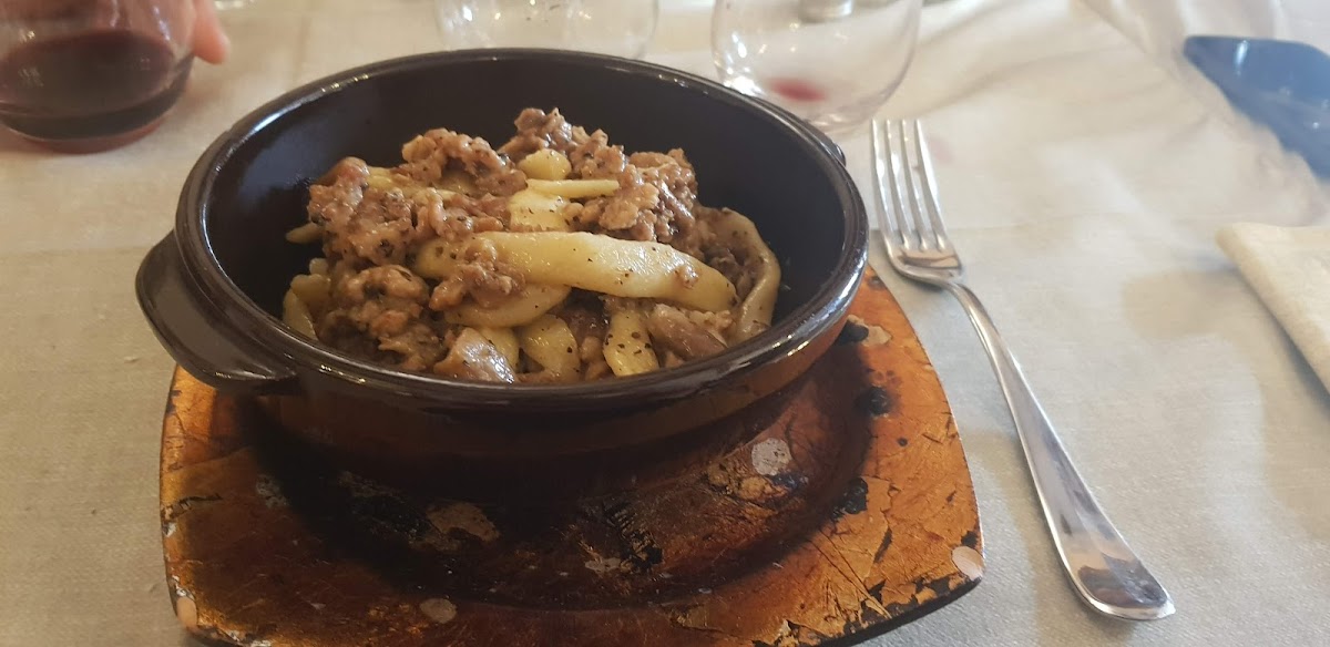 In quattro abbiamo ordinato un Tagliere Vittoria, tre Tagliatelle ai funghi porcini e tartufo, un Raviolo mantecato al baccalà, e un giro di arrosticini (ne avremmo mangiati anche due ). Giuste quantità, senza esagerare. Il tagliere ci ha sorpresi particolarmente con la loro selezione di salumi e formaggi km0. Per dirne una, davvero sororendente la salsiccia di cervo, ma poi tutto buono. Da provare e farsi spiegare. Le Tagliatelle hanno un sapore delicato e i funghi dal gusto deciso, appena accennato il tartufo. I Ravioli molto buoni, adagiati su una crema di baccalà gustosa. Gli arrosticini sono tagliati al coltello, non industriali, sapore meraviglioso e anche la cottura. Fantastici. Tutta l'esperienza molto piacevole, locale tranquillo, ben riscaldato, buon servizio, personale cordiale. Torneremo con piacere.